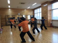 〈練習内容〉呉式太極剣(64式) 〈連絡先〉 担当者 王 革 携帯:080-3890-7533, Mail:taiji.wangge@gmail.com 呉式太極拳に基づいて編成されたものです。32式太極剣から引き続きレッスンを受ける人が多く、運動量も多く、内容は難度が高くなりますが、楽しんで頑張っています |